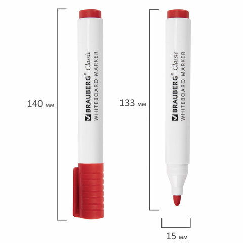 Высококачественный маркер BRAUBERG "CLASSIC" для белой доски. Предназначен для письма на досках с магнитно-маркерной поверхностью.