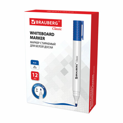 Высококачественный маркер BRAUBERG "CLASSIC" для белой доски. Предназначен для письма на досках с магнитно-маркерной поверхностью.
