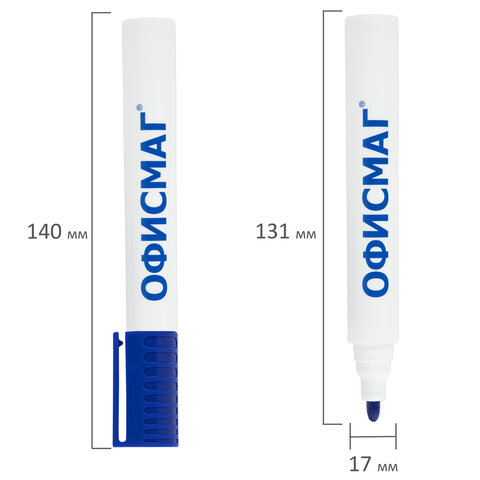 Маркер стираемый для белой доски СИНИЙ, ОФИСМАГ, круглый наконечник, 3 мм, 152219