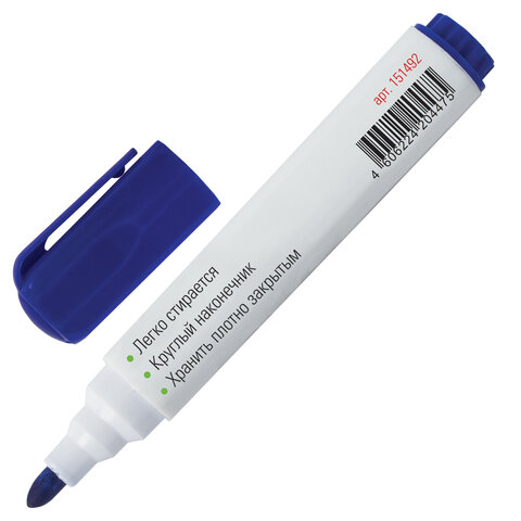 Маркер стираемый для белой доски СИНИЙ, STAFF "Manager" WBM-491, 5 мм, с клипом, 151492
