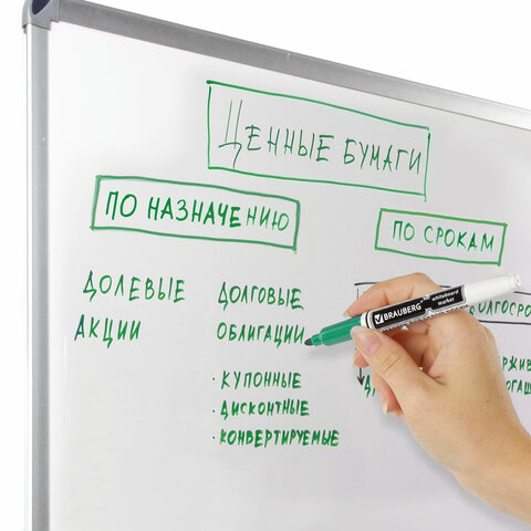 Высококачественный маркер BRAUBERG для белой доски. Предназначен для письма на досках с магнитно-маркерной поверхностью.