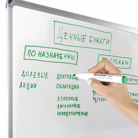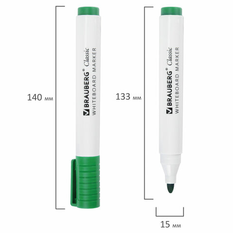Высококачественный маркер BRAUBERG "CLASSIC" для белой доски. Предназначен для письма на досках с магнитно-маркерной поверхностью.