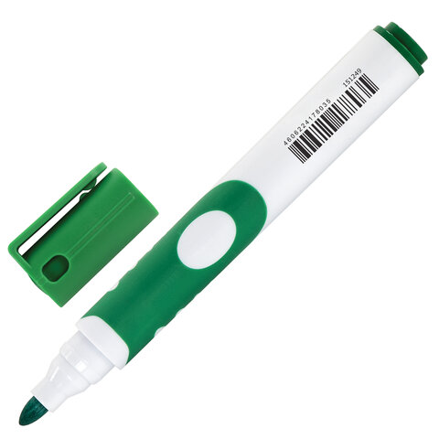 Маркер стираемый для белой доски ЗЕЛЕНЫЙ, BRAUBERG "SOFT", 5 мм, резиновая вставка, 151251