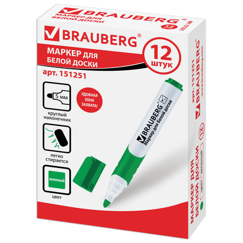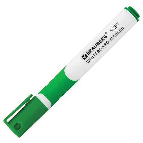 Высококачественный маркер BRAUBERG "SOFT" для белой доски. Предназначен для письма на досках с магнитно-маркерной поверхностью.