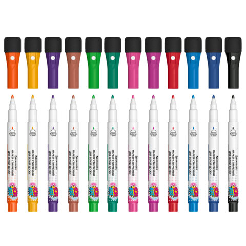 Маркеры на магните со стирателем для белой доски и планера, 12 цветов, BRAUBERG POP-ART, 1-2 мм, 152568