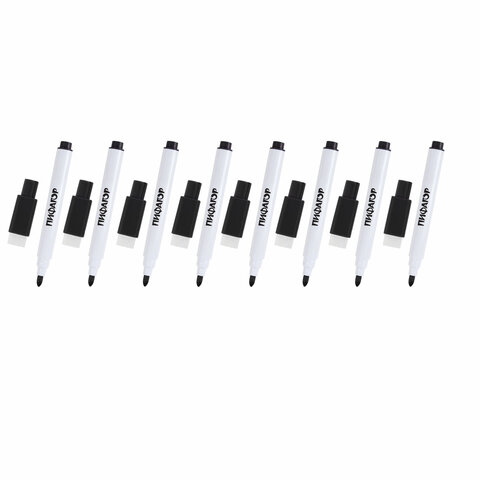 Маркеры стираемые 2 мм на магните со стирателем для белой доски и планера ЧЕРНЫЕ, НАБОР 8 ШТУК, ПИФАГОР, 152563