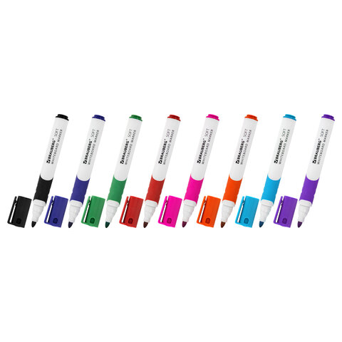 Маркеры стираемые для белой доски НАБОР 8 ЦВЕТОВ, BRAUBERG "SOFT", 5 мм, резиновая вставка, 152112