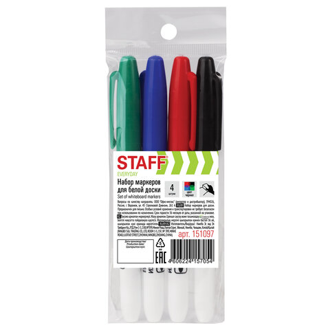 Набор маркеров STAFF для белой доски. Предназначен для письма на досках с магнитно-маркерной поверхностью.