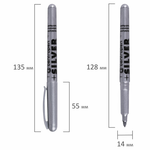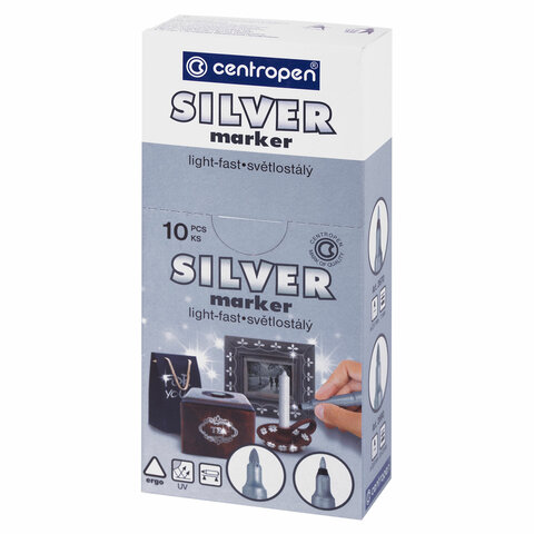 Маркер для декорирования СЕРЕБРЯНЫЙ CENTROPEN, круглый наконечник, 1,5-3 мм, 2690, 6 2690 0194