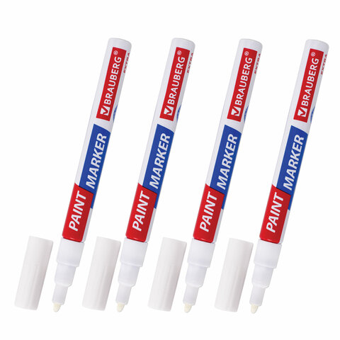 Маркер-краска лаковый EXTRA (paint marker) 2 мм, БЕЛЫЕ, НАБОР 4 шт., УСИЛЕННАЯ НИТРО-ОСНОВА, BRAUBERG, 151995