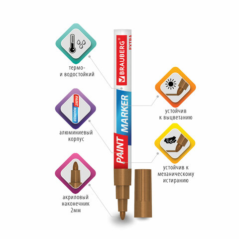 Маркер-краска лаковый BRAUBERG EXTRA предназначен для маркировки на различных поверхностях: бетон, дерево, стекло, металл, резина, пластик как в промышленных, так и в бытовых целях.
