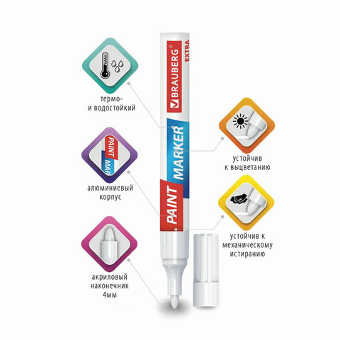 Набор маркеров-красок лаковых BRAUBERG EXTRA предназначен для маркировки на различных поверхностях: бетон, дерево, стекло, металл, резина, пластик как в промышленных, так и в бытовых целях.