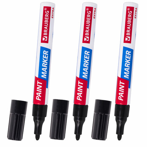 Маркер-краска лаковый EXTRA (paint marker) 4 мм, ЧЕРНЫЕ, НАБОР 3 шт., УСИЛЕННАЯ НИТРО-ОСНОВА, BRAUBERG, 151999