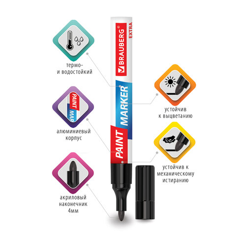 Маркер-краска лаковый BRAUBERG EXTRA предназначен для маркировки на различных поверхностях: бетон, дерево, стекло, металл, резина, пластик как в промышленных, так и в бытовых целях.