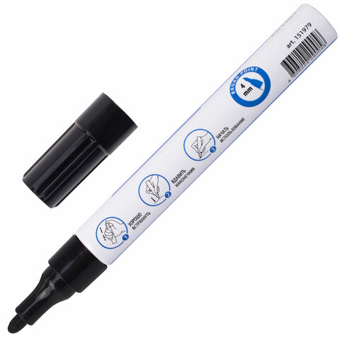 Маркер-краска лаковый EXTRA (paint marker) 4 мм, ЧЕРНЫЙ, УСИЛЕННАЯ НИТРО-ОСНОВА, BRAUBERG, 151979