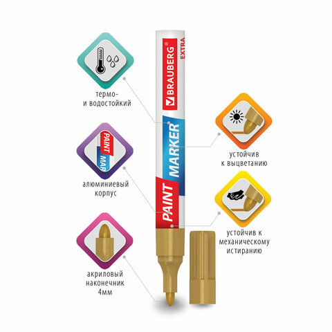 Набор маркеров-красок лаковых BRAUBERG EXTRA предназначен для маркировки на различных поверхностях: бетон, дерево, стекло, металл, резина, пластик как в промышленных, так и в бытовых целях.