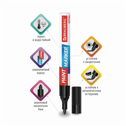 Набор маркеров-красок лаковых BRAUBERG EXTRA предназначен для маркировки на различных поверхностях: бетон, дерево, стекло, металл, резина, пластик как в промышленных, так и в бытовых целях.