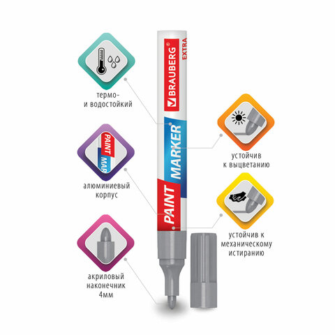 Маркер-краска лаковый BRAUBERG EXTRA предназначен для маркировки на различных поверхностях: бетон, дерево, стекло, металл, резина, пластик как в промышленных, так и в бытовых целях.