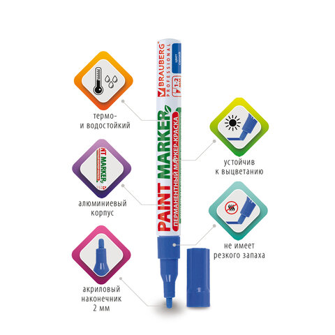 Маркер-краска лаковый (paint marker) 2 мм, СИНИЙ, БЕЗ КСИЛОЛА (без запаха), алюминий, BRAUBERG PROFESSIONAL, 150864