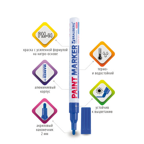 Маркер-краска лаковый (paint marker) 2 мм, СИНИЙ, НИТРО-ОСНОВА, алюминиевый корпус, BRAUBERG PROFESSIONAL PLUS, 151441