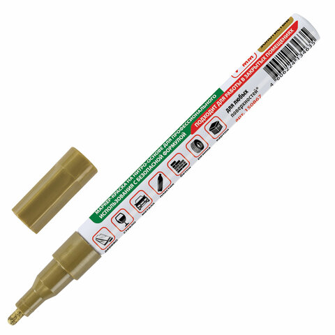 Маркер-краска лаковый (paint marker) 2 мм, ЗОЛОТОЙ, БЕЗ КСИЛОЛА (без запаха), алюминий, BRAUBERG PROFESSIONAL, 150867