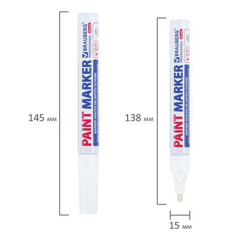 Маркер-краска лаковый BRAUBERG предназначен для маркировки различных материалов в промышленных условиях: бетона, дерева, стекла, металла, резины, пластика. Заправлен краской с усиленной формулой на нитро-основе РМ-14.