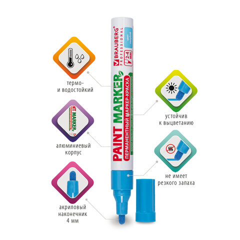 Маркер-краска лаковый (paint marker) 4 мм, ГОЛУБОЙ, БЕЗ КСИЛОЛА (без запаха), алюминий, BRAUBERG PROFESSIONAL, 151435