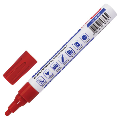 Маркер-краска лаковый (paint marker) 4 мм, КРАСНЫЙ, НИТРО-ОСНОВА, алюминиевый корпус, BRAUBERG PROFESSIONAL PLUS, 151446