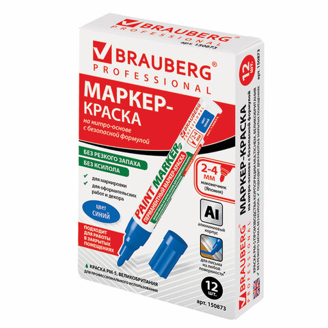 Маркер-краска лаковый (paint marker) 4 мм, СИНИЙ, БЕЗ КСИЛОЛА (без запаха), алюминий, BRAUBERG PROFESSIONAL, 150873