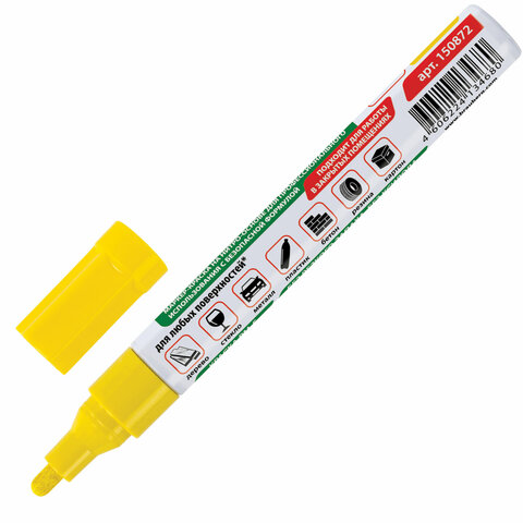Маркер-краска лаковый (paint marker) 4 мм, ЖЕЛТЫЙ, БЕЗ КСИЛОЛА (без запаха), алюминий, BRAUBERG PROFESSIONAL, 150872