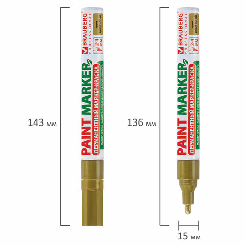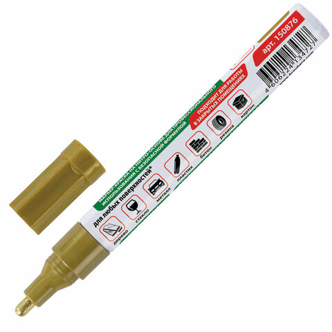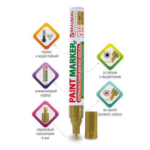 Маркер-краска лаковый (paint marker) 4 мм, ЗОЛОТОЙ, БЕЗ КСИЛОЛА (без запаха), алюминий, BRAUBERG PROFESSIONAL, 150876