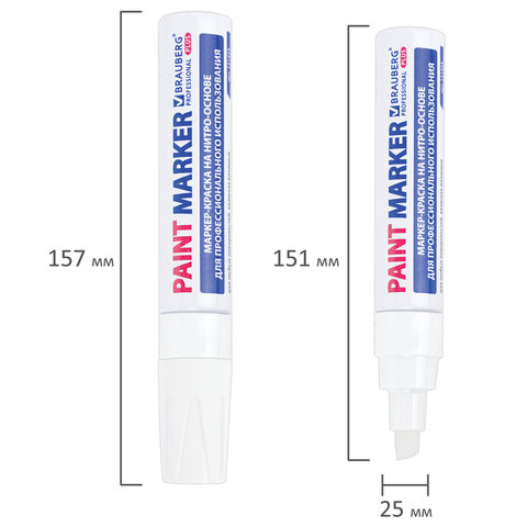 Маркер-краска лаковый BRAUBERG предназначен для маркировки различных материалов в промышленных условиях: бетона, дерева, стекла, металла, резины, пластика. Заправлен краской с усиленной формулой на нитро-основе РМ-14.