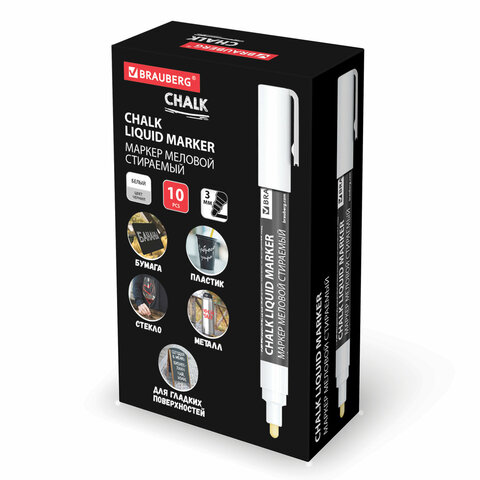 Стираемый меловой маркер BRAUBERG "CHALK" предназначен для создания рисунков и надписей на гладких и прозрачных невпитывающих поверхностях (например, зеркалах, стекле, меловой пленке). Подходит для школьных занятий, идеальны для детского творчества!