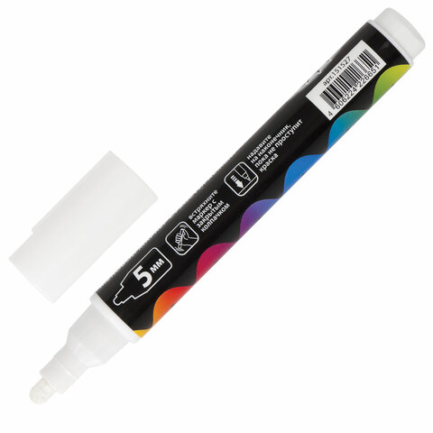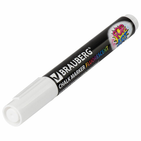 Маркер меловой "POP-ART" БЕЛЫЙ, 5 мм, стираемый, для гладких поверхностей, BRAUBERG, 151527