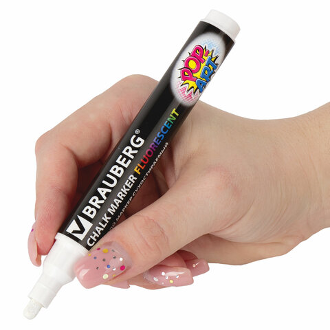 Стираемый меловой маркер BRAUBERG "POP-ART" - оригинальный инструмент для оформления различных зон помещений. Идеален для использования на школьных занятиях и детского творчества.