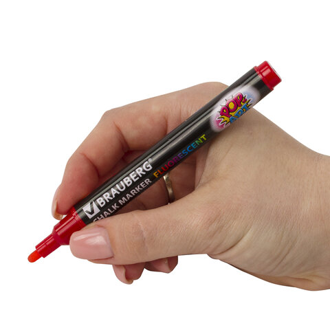 Сухостираемый меловой маркер BRAUBERG "POP-ART" - оригинальный инструмент для оформления различных зон помещений. Идеален для использования на школьных занятиях и детского творчества.