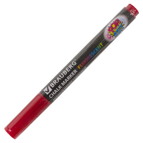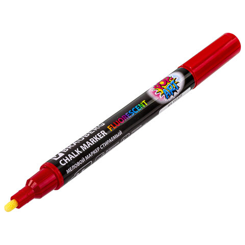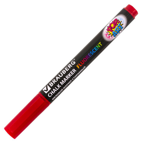 Маркер меловой "POP-ART" КРАСНЫЙ, 3,5 мм, стираемый, для гладких поверхностей, BRAUBERG, 151521