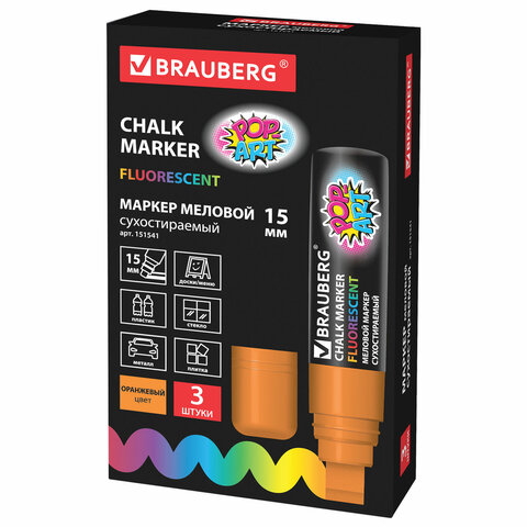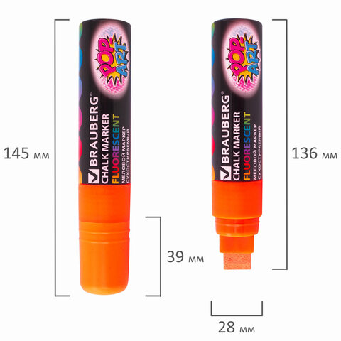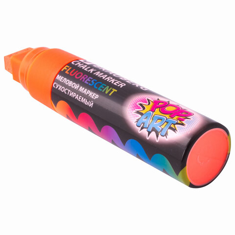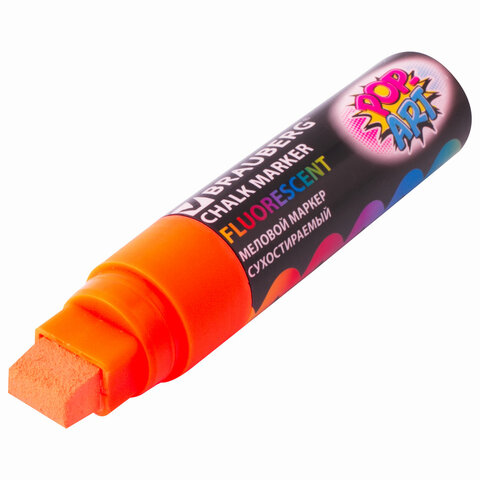 Маркер меловой "POP-ART" ОРАНЖЕВЫЙ, 15 мм, стираемый, для гладких поверхностей, BRAUBERG, 151541