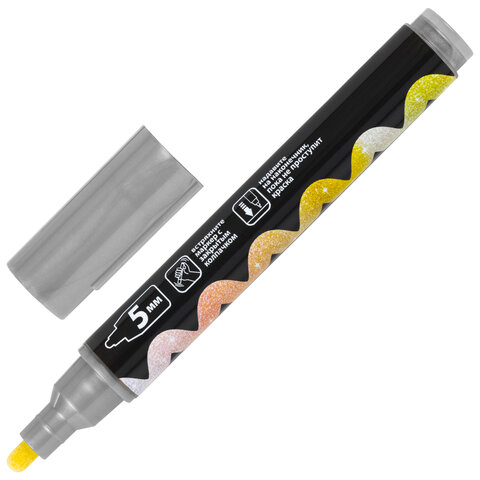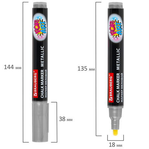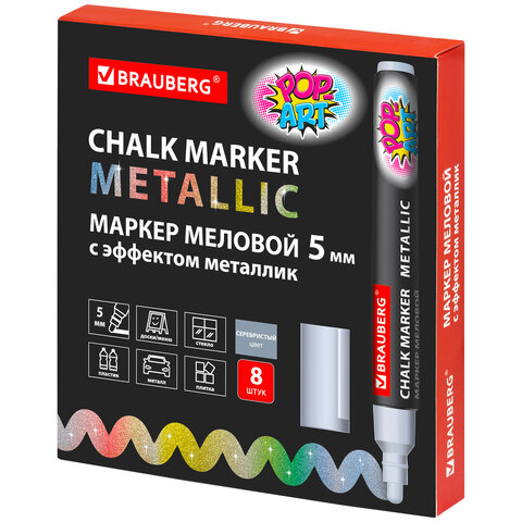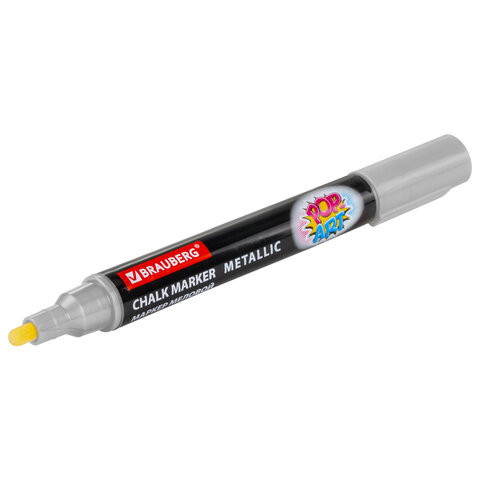 Маркер меловой "POP-ART" СЕРЕБРЯНЫЙ, 5 мм, ВЛАГОСТИРАЕМЫЙ, для гладких поверхностей, BRAUBERG, 152486
