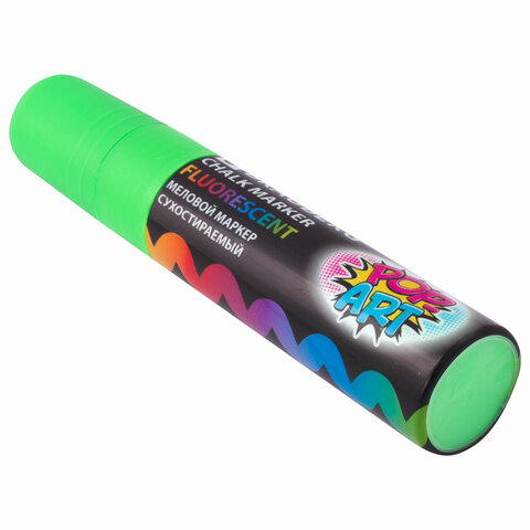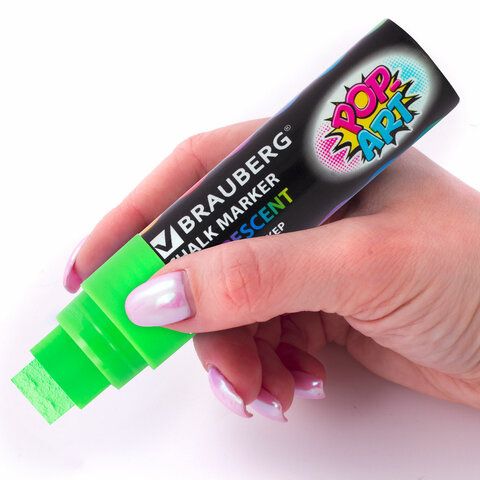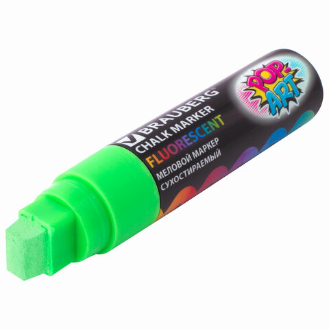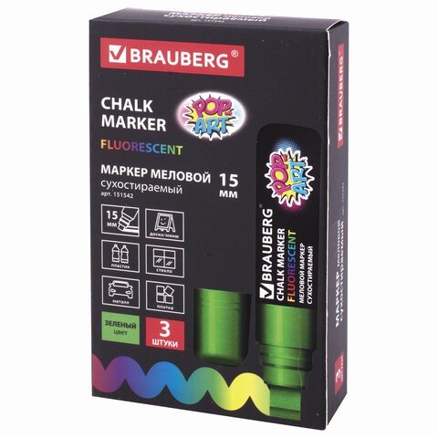 Маркер меловой "POP-ART" ЗЕЛЕНЫЙ, 15 мм, стираемый, для гладких поверхностей, BRAUBERG, 151542