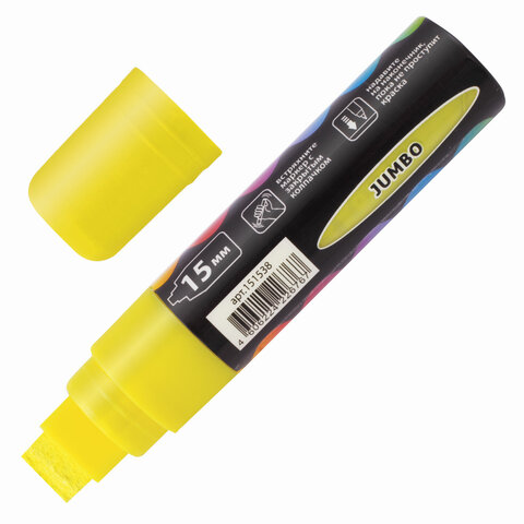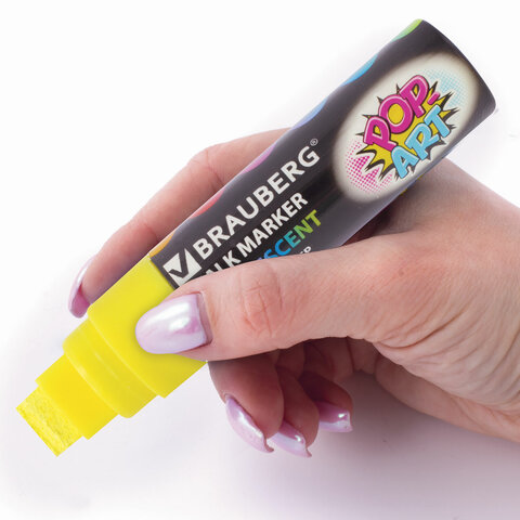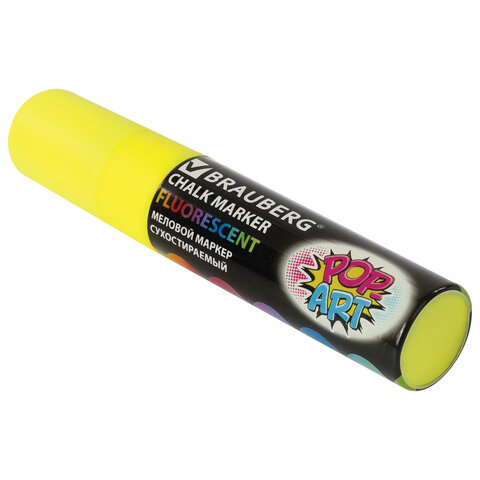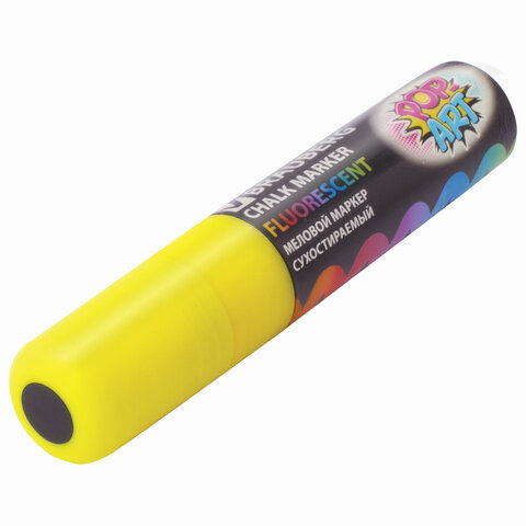 Маркер меловой "POP-ART" ЖЕЛТЫЙ, 15 мм, стираемый, для гладких поверхностей, BRAUBERG, 151538