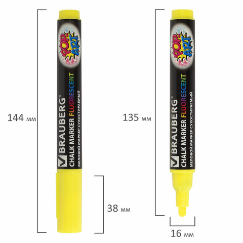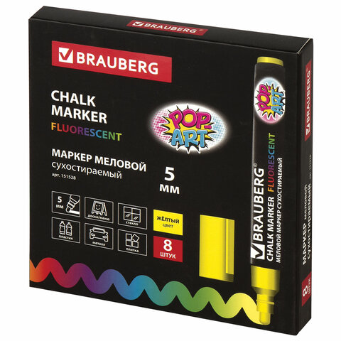 Стираемый меловой маркер BRAUBERG "POP-ART" - оригинальный инструмент для оформления различных зон помещений. Идеален для использования на школьных занятиях и детского творчества.