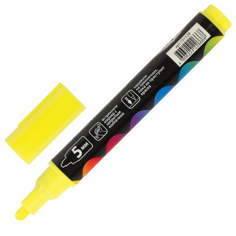 Маркер меловой "POP-ART" ЖЕЛТЫЙ, 5 мм, стираемый, для гладких поверхностей, BRAUBERG, 151528
