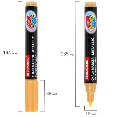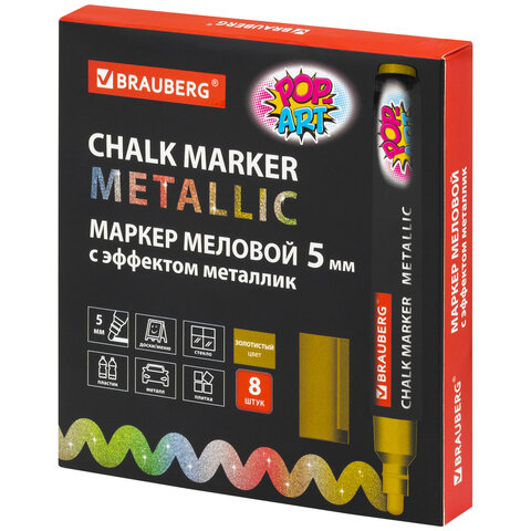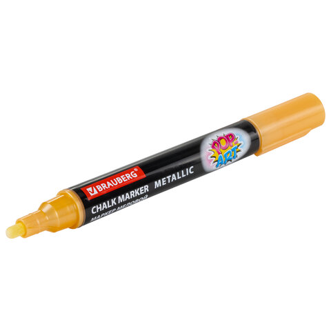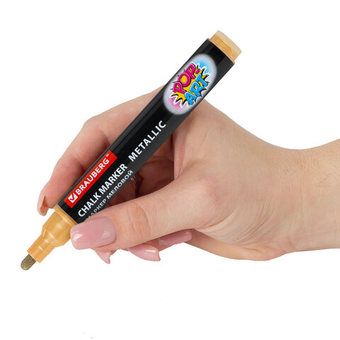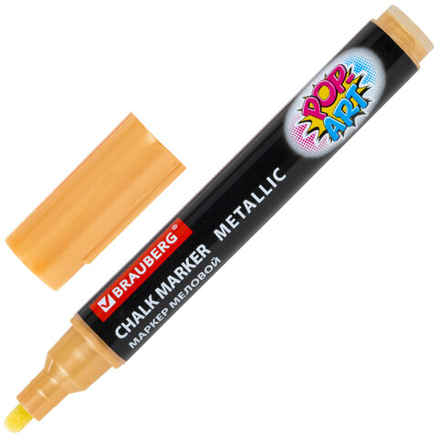 Маркер меловой "POP-ART" ЗОЛОТОЙ, 5 мм, ВЛАГОСТИРАЕМЫЙ, для гладких поверхностей, BRAUBERG, 152485