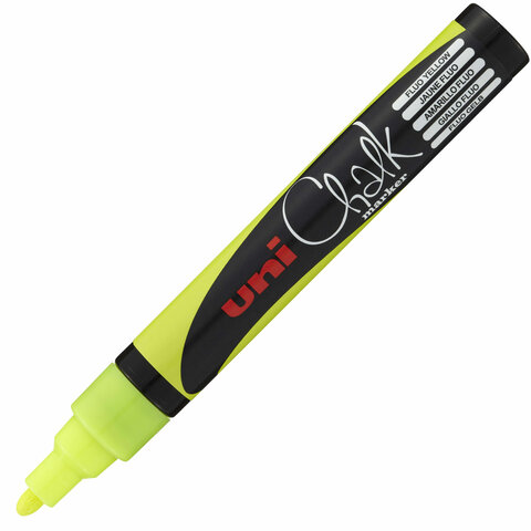 Маркер меловой UNI Chalk, 1,8-2,5 мм, ЖЕЛТЫЙ, влагостираемый, для гладких поверхностей, PWE-5MF.YELLOW, PWE-5M F.YELLOW