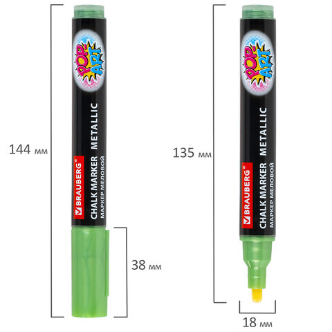 Маркеры меловые "POP-ART", НАБОР 6 ЦВЕТОВ МЕТАЛЛИК, 5 мм, ВЛАГОСТИРАЕМЫЕ, BRAUBERG, 152487