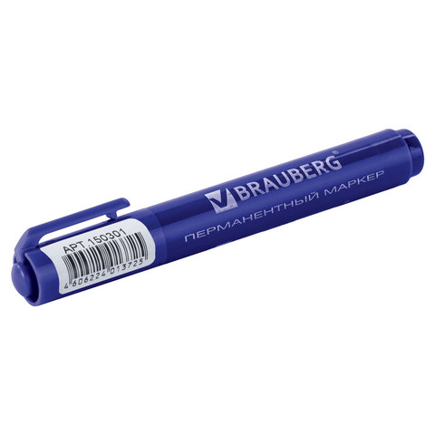 Маркер перманентный BRAUBERG "Classic", СИНИЙ, круглый наконечник, 3 мм, с клипом, 150301