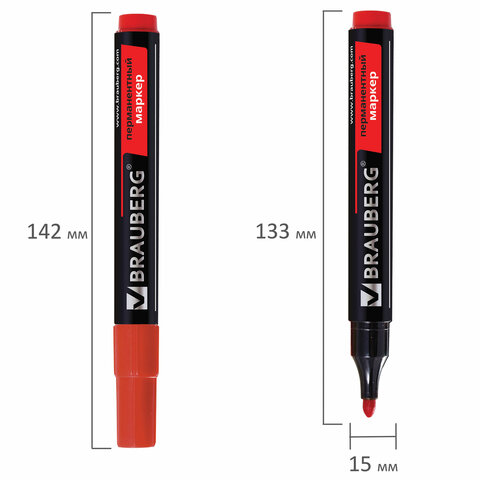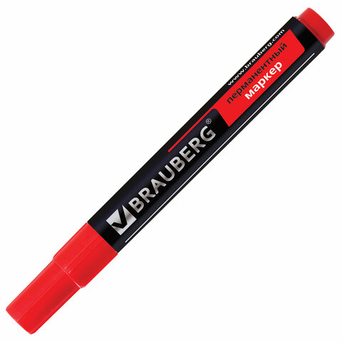 Маркер перманентный BRAUBERG "Contract", КРАСНЫЙ, круглый наконечник, 3 мм, 150467