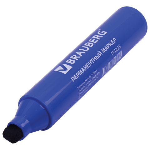 Маркер перманентный BRAUBERG "JUMBO", СИНИЙ, ШИРОКАЯ ЛИНИЯ ПИСЬМА, скошенный наконечник, 3-10 мм, 151225