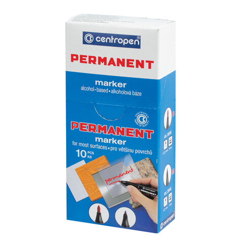 Высококачественный нестираемый перманентный маркер CENTROPEN предназначен для надписей на любых поверхностях, в том числе пластмассе, стекле, пленках.